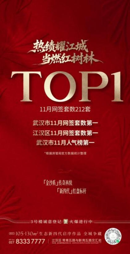唯有兼具实力与口碑的项目,方能穿越市场周期,成为全城追捧的焦点。城投·红树林,正是这样用数据与热度说话的红盘——首开当日劲销5.2亿,11月狂揽“武汉市网签套数第一、江汉区网签套数第一、武汉市人气榜第一”三项殊荣,以212套网签佳绩稳稳奠定武汉红盘标杆地位。如今传奇再续,3号楼新品即将重磅加推,一场新的热潮已然来袭!